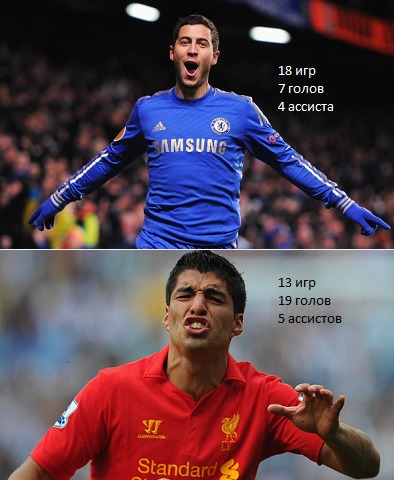 Эден является лучшим игроком команды, он больше всех забил – 7 мячей, чаще других ассистировал – 4 голевые передачи, также он является лидером "Челси" по созданным моментам для партнеров – 46 обостряющих передач и занимает второе место по количеству ударов по воротам – 34. В общем, обороне "Ливерпуля" следует обратить самое пристальное внимание на этого бельгийца. Азар обычно действует на левом фланге с частыми смещениями в центр, скорее всего, за ним большую часть времени будет присматривать Глен Джонсон, эта дуэль вполне может стать ключевой в матче. Кстати, Джонсон занимает второе место в своей команде по перехватам (26), поэтому логично предположить, что он постарается играть на опережение и прерывать передачи до того как они попадут в ноги к Эдену.