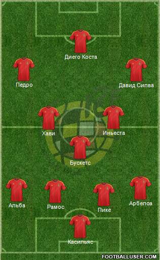 Практически не меняется состав Красной Фурии в последние годы. Почти все те же лица в полузащите и обороне. Это и понятно, ведь Испания берет в первую очередь прекрасной сыграностью. Интригой является лишь то, кто займет место центрального нападающего? Я рискну предположить, что в связи с натурализацией Диего Косты, а также его прекрасной формы, первым выбором Дель Боске будет именно он, но нельзя забывать и о неувядающем Вилья, Негредо и даже Торресе, который очень любит забивать решающие мячи. Что по ротации, то возможно появление появление Карвахаля вместо Арбелоа справа, Санти Касорлы, Сеска Фабрегаса, Хуана Мата вместо кого-то из атакующих полузащитников-вингеров. Не думаю, что дон Висенте захочет разбавлять каталонское трио в середине поля условными Хаби Алонсо или Хави Мартинесом.