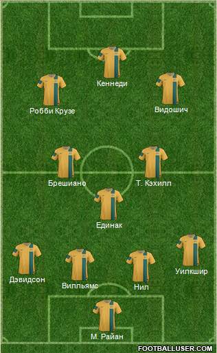 Позицию в воротах занимает молодой Мэтью Райан из Брюгге, его сменщик-запасной кипер дортмундской Боруссии Лангерак. Защитник московского Динамо Люк Уилкшир один из многолетних лидеров сборной, его место на правом краю обороны не подвергается сомнению, как и место опытнейшего Лукаса Нила, капитана команды. Саша Огненовски может составить конкуренцию Вилльямсу в центре обороны, а более опытный Карни-молодому Дэвидсону слева. В полузащите практически незыблемы позиции Кэхилла и Брешиано, а вот опорника Единака может сменить волнорез из Мельбурна Миллиган или Холланд из Аустрии. В атаке играют главная звезда нынешней сборной Джошуа Кеннеди и главная надежда Робби Крузе. Их партнеры постоянно варьируются: Видошич, Рукавица, Леки, все они вправе рассчитывать на попадание в стартовый состав.