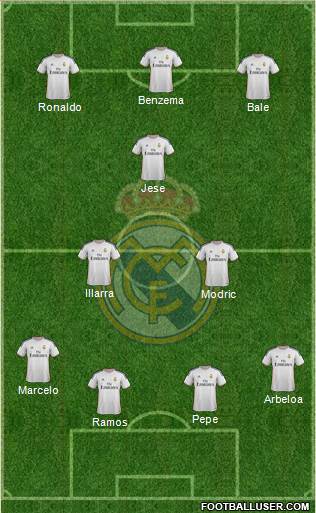 Вот так выглядела расстановка. Сюрпризов практически не было. Кроме пожалуй Хесе...Заслужил парень место в основе. ( не побоюсь этих слов). Предсказуемо на поле вернулся Бэйл и Касильяс. Благодаря рокировке, на поле вышел также Арбелоа. Таким образом получилось, что тройка атакующих игроков была основной: Роналду Бензема и Бэйл. Под нападением располагался Хесе. Модрич выполнял титаническую работу как в обороне, так и в атаке. Немного не понял, какую роль на поле выполнял Асьер, но об этом чуть позже. В центре обороны располагались Рамос и Пепе.