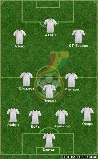 Ветерана Ричарда Кингстона из ворот сборной вытеснил более молодой Давуда. В обороне играют сильнейшие на данный момент ганские защитники, альтернативы которым практически нет. Обращает на себя внимание центр полузащиты из знаменитых игроков, а также классные исполнители в атаке, помимо которых также есть Маджид Уоррис, Кристиан Атсу, Мубарак Вакассо и брат Андре Айю Джердан. Кстати, отцом братьев Айю является легенда африканского футбола Абеди Пеле.