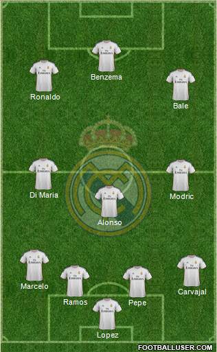 Состав был следующим. В воротах все-таки играл Лопес. В центре играл Алонсо по краям Ди Мария и Модрич. В защите все понятно. В атаке все понятно. В принципе все предсказуемо. Только схема 4-3-3. В последнее время редко мы использовали такую схему.