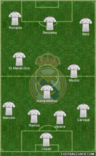 Что касается центра поля , то тоже есть вопросы. Алонсо тоже тренировался в зале , а значит не совсем готов к матчу. Карло рассказал , что выберет игроков по результатам утренней тренировки. Так что, Астер имеет шансы на выход с первых минут матча. Тоже самое касается Ди Марии. Вроде он набрал прекрасную форму и это действительно так. Но с другой стороны Иско тоже необходимо получать игровое время. Тут я не могу сказать точно. Надеюсь, что Анчелотти всё-таки не будет применять ротацию сразу на двух позициях в центре поля. Модрич сыграет с первых минут матча.