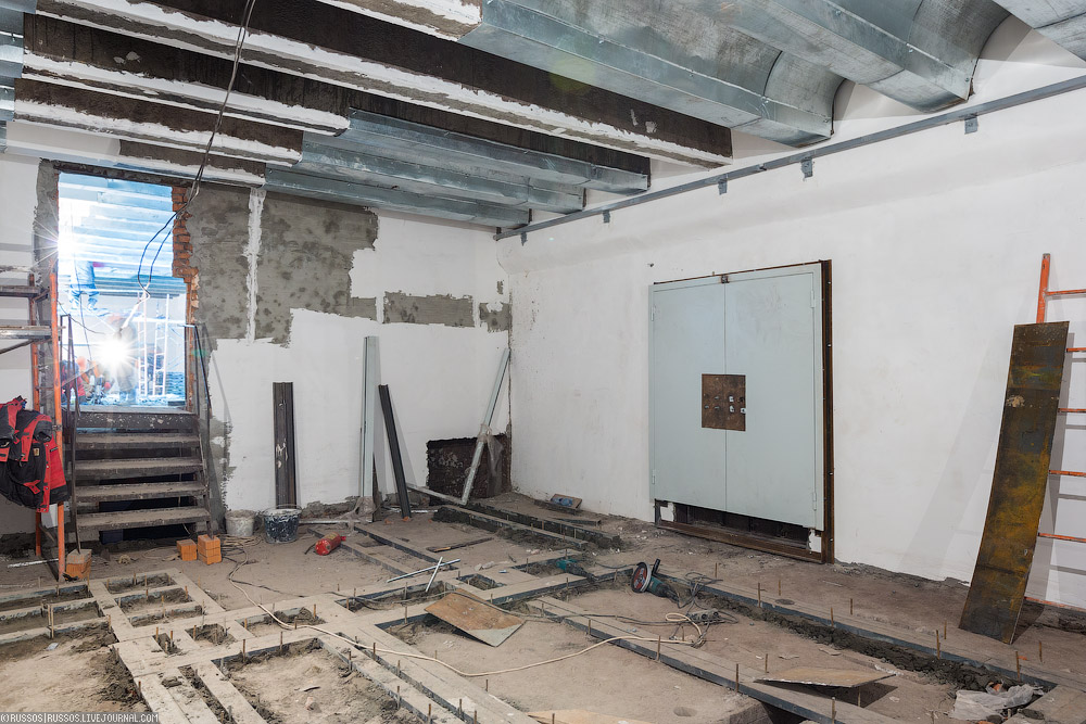 6. Одно из помещений подстанции. Этот узел, находящийся между тоннелями был построен еще тогда. Сейчас он реконструирован под новый проект.