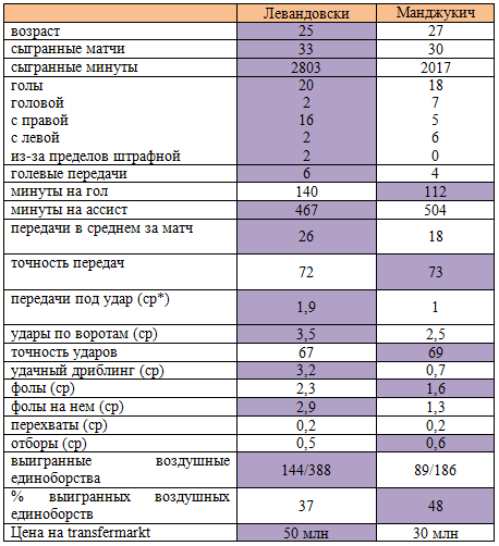 Из таблицы выше видно, что Левандовски более разноплановый игрок, чем Манджукич, он, несомненно, усилит команду Гвардиолы.