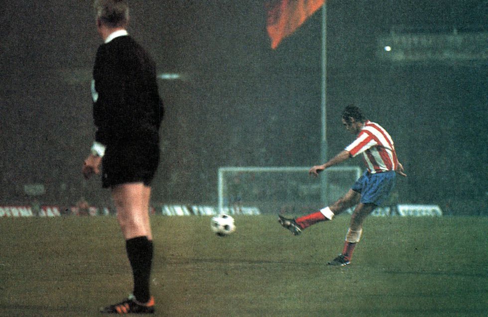 Атлетико вернулся в финал 40 лет спустя. Классный штрафной прощавшегося с карьерой игрока Луиса Арагонеса обещал многое. Шла 114-я минута матча. Ошибка Мигеля Рейны за секунды до финального свистка назначила переигровку. 4:0, Бавария. “Жаль. Очень жаль. Кубок был у нас почти в руках. Значит, мы недостаточно хорошо работали” – резюмировал красно-белый энтренадор Хосе Луис Капон. Поражение стоило ему отставки. В следующем сезоне с командой работал уже великий Луис.