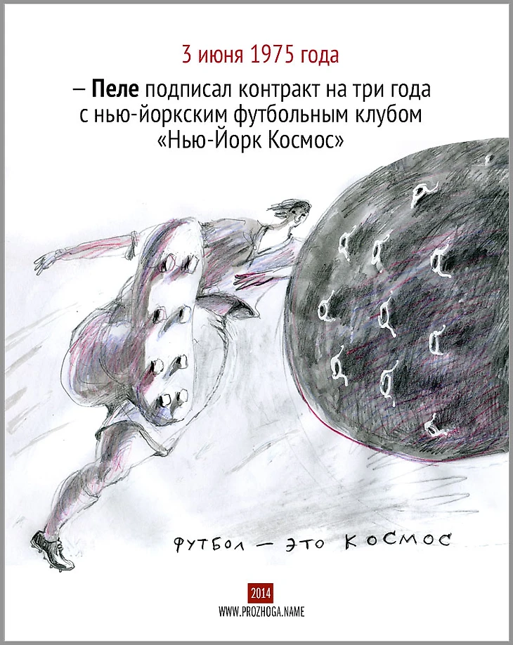 3 июня 1975 года — Пеле подписал контракт на три года с нью-йоркским футбольным клубом «Нью-Йорк Космос»