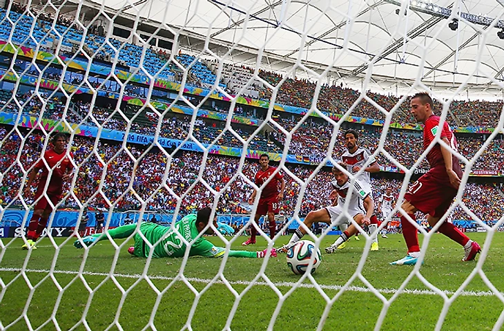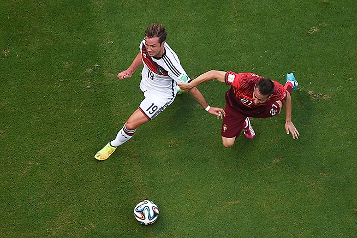 Еще одним преимуществом немцев было то, что вся атакующая тройка в случае атаки португальцев опускалась ближе к центру, создавая там численное преимущество и помогая тем самым центральным полузащитникам. Символично, что Марио Гетце, располагающийся ближе к атаке совершил 3 отбора – больше любого игрока португальской сборной.