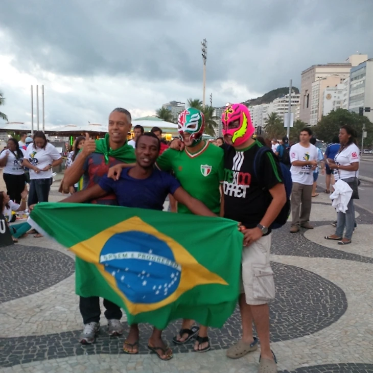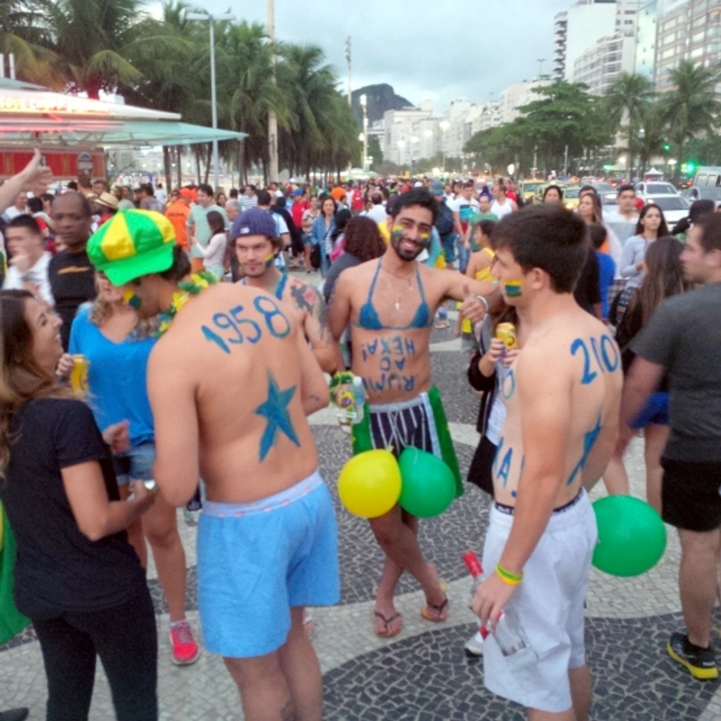 А продолжили на Копакабане. Длина пляжа – четыре километра, так что, пока мы шли вдоль берега, по Авенида Атлантика, счет изменился трижды. Но экранов там столько, что мы ничего и не пропустили.