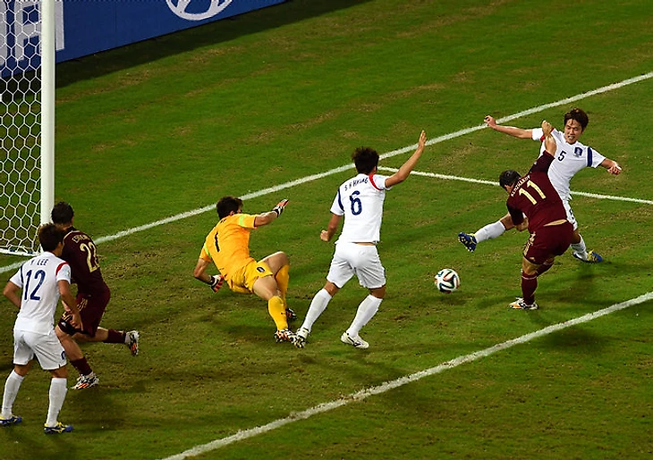 Этого соперника до ЧМ ставили в фавориты нашей группы. За такое мнение говорили имена исполнителей бельгийцев – Азар, Куртуа, Компани, Мертенс, Де Брюйне. Но в матче с Алжиром бельгийцы (пусть и с пенальти) пропустили первыми и очень долго не могли отыграться. В игре с нашими бельгийцы активно начали первый тайм – одни проходы Мертенса чего стоят. Но в первые двадцать минут второго тайма ситуация кардинально изменилась – футболисты российской сборной заперли бельгийцев в их штрафной и не хотели их оттуда выпускать. Не хватало всего чуть-чуть – один точный пас, один точный прострел и мы бы сейчас не посыпали головы наших футболистов пеплом. Но единственный штрафной (попадание Азара в штангу) и гол - и все старания пошли насмарку. Обида и уныние после матча. Все ожидали перемен в составе – ведь в матче с корейцами «зажгли» Дзагоев и Кержаков. Но Капелло заменил только Ещенко. Было видно, что ребята пытались комбинировать, пахали на поле от и до. Но не получилось. Снова Бельгия нас обыгрывает.