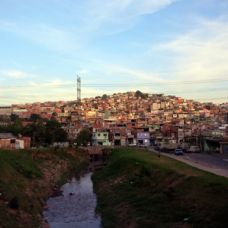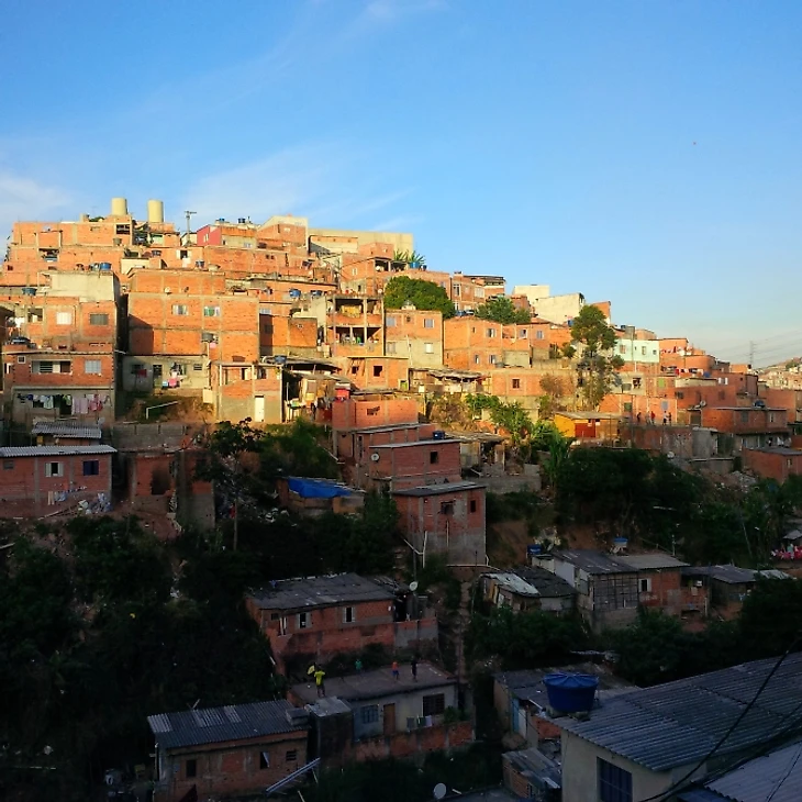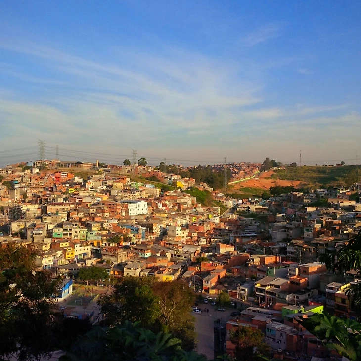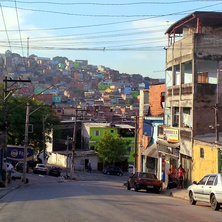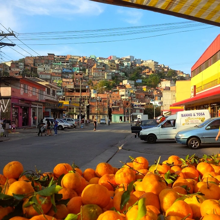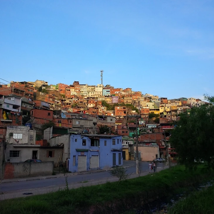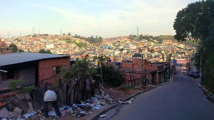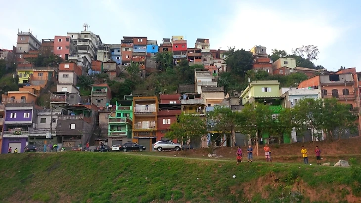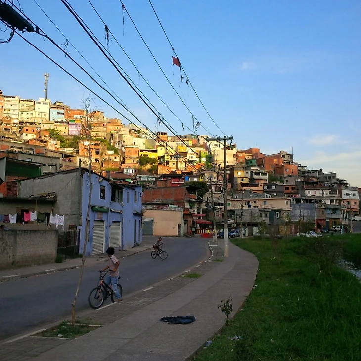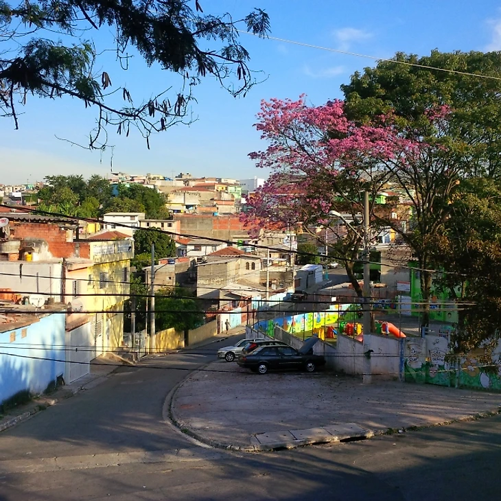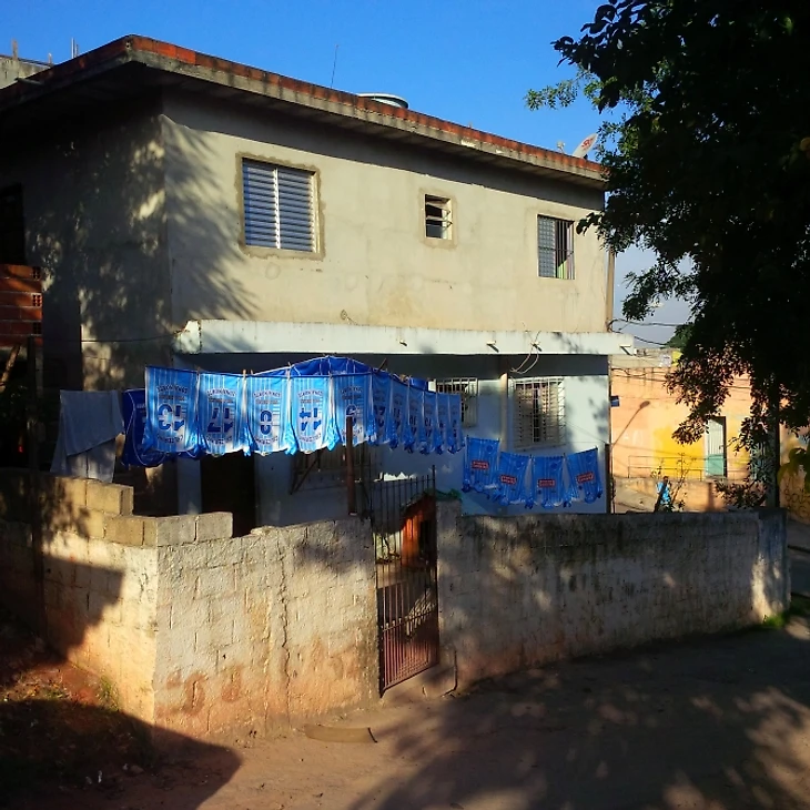 Свернув с автострады, приходится довольно долго ползти в горку, откуда становятся видны очертания самой фавелы. Здесь же попадается поле с осветительными мачтами – на нем гоняет местная команда «Крузейриньо». Перед домом напротив сушится ее форма.