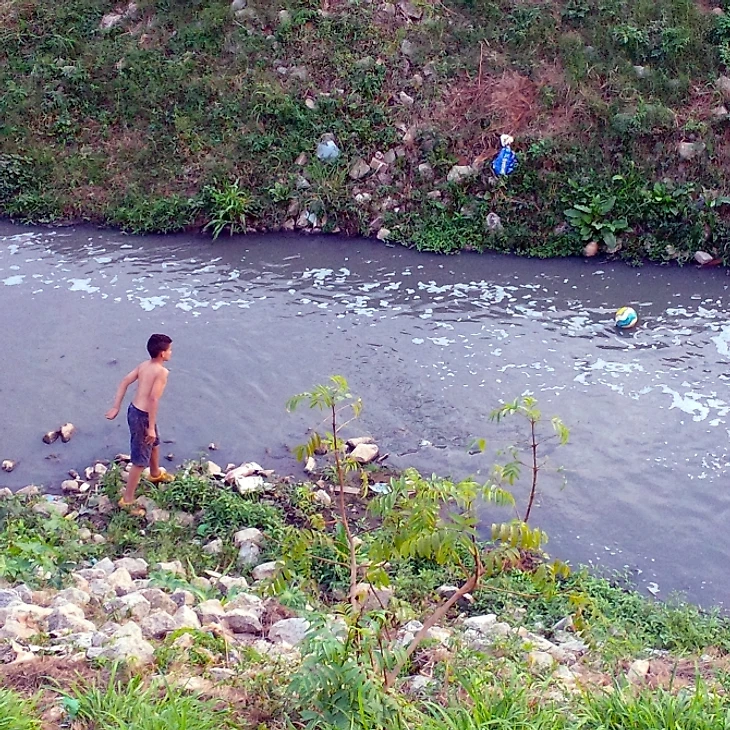 Вокруг поля около речки поднимаются красные клубы пыли – десять человек лихорадочно носятся за мячом, стараясь затолкать его в одни и те же ворота. Сетка безнадежно разодрана, мяч низменно пролетает сквозь нее и катится в сторону воды. Если догнать его не удается, парни с одной стороны реки вооружаются камнями и начинают швырять их, прижимая мяч к другому берегу, где его уже готовы вылавливать остальные. В воду никто не суется, она переполнена промышленными отходами.