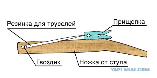 5) Спичкострел. Делался он из деревянных бельевых прищепок. Стрелял обычными или горящими спичками метров на 10. Для его изготовления разбиралась деревянная прищепка, надфилем протачивалось место для пружины ( от этой же прищепки ), протачивался "ствол", на одну из половинок одевалась пружина, половинки соединялись обратными сторонами и перематывались изолентой. Пружина играла роль и спускового крючка и толкателя одновременно. Иногда на "стволе" закреплялся кусочек "чиркаша" от спичечного коробка, что бы спичка загоралась сама в момент выстрела. Чаще же просто проводили по ней коробком и тут же стреляли.