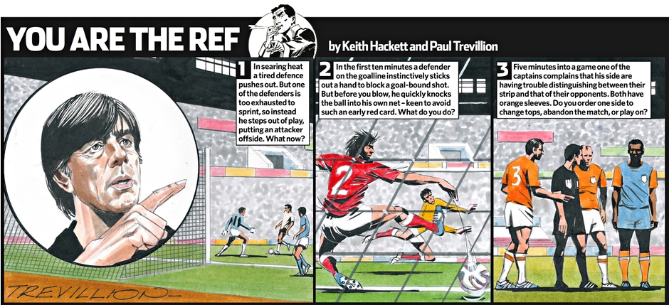 Четвертый выпуск популярной серии футбольных комиксов с задачками о непростых для арбитров ситуациях – в блоге «Англия, Англия».