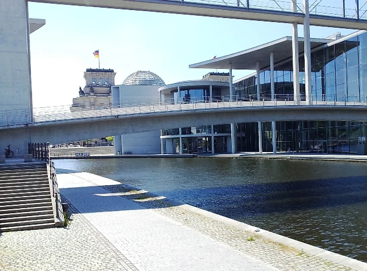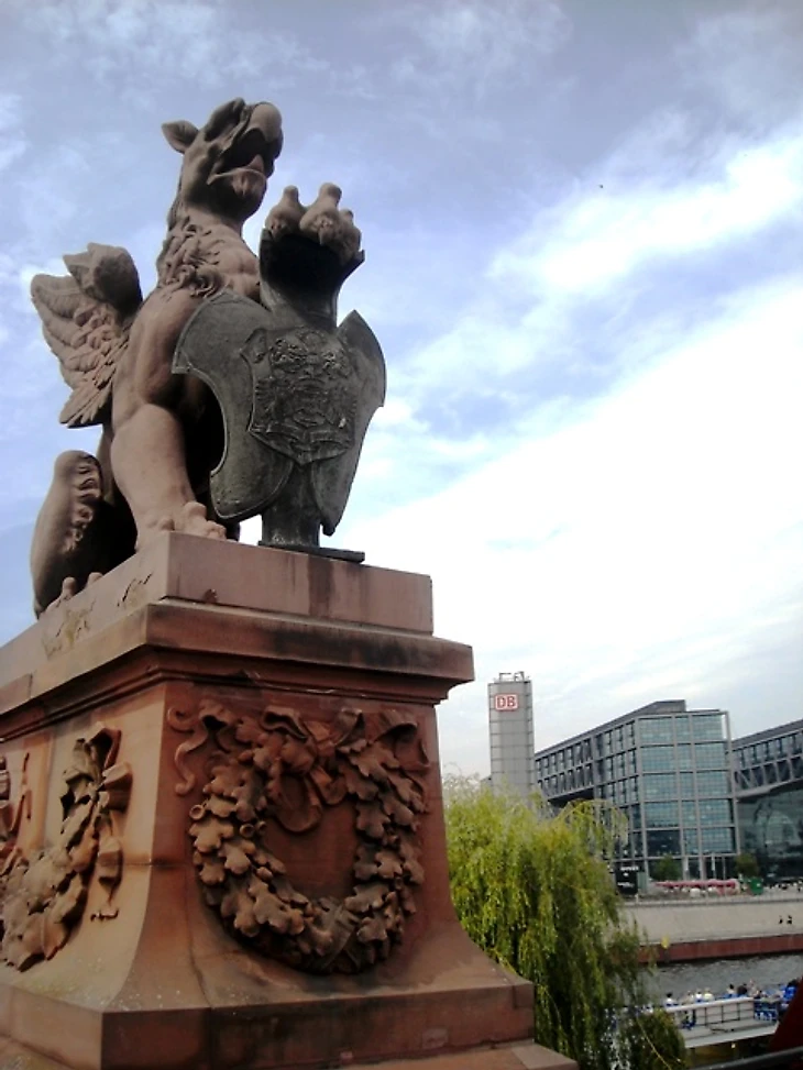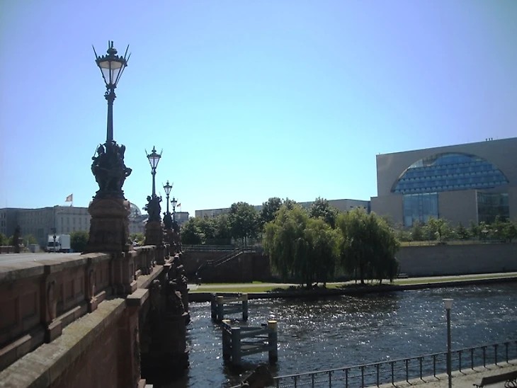 Поборов в себе желание скупить все лотки с печатной продукцией, мы направились в сторону главных достопримечательностей города – Бундестага, Рейхстага и Бранденбургских Ворот. От вокзала до всего этого можно дойти пешком, благо и дорога туда красивая. Хотя бы этот мост с открывающимся видом на реку Шпрее.