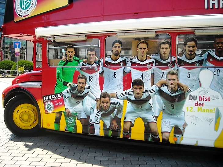 На площади было многолюдно но главное – большинство людей уже было облачено в майки сборной и увешано атрибутикой в черно-красно-желтых цветах. До матча оставалось около пяти часов, но это же немцы, которые все делают заранее. Поддавшись ажиотажу, мы зашли в первый попавшийся туристический магазинчик, манивший своим ассортиментом.