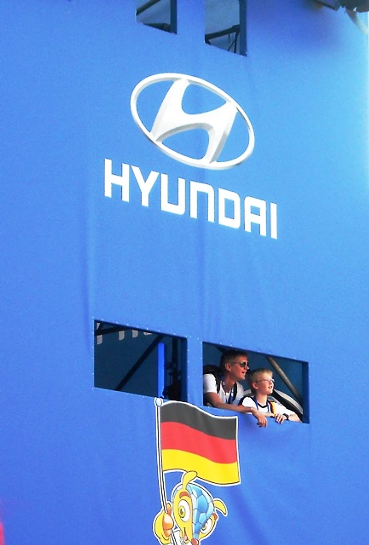 Растяжка известной страховой компании сообщала, что «Allianz» тоже держит пальцы за сборную, а возле площади стоял автобус ее официального фан-клуба.