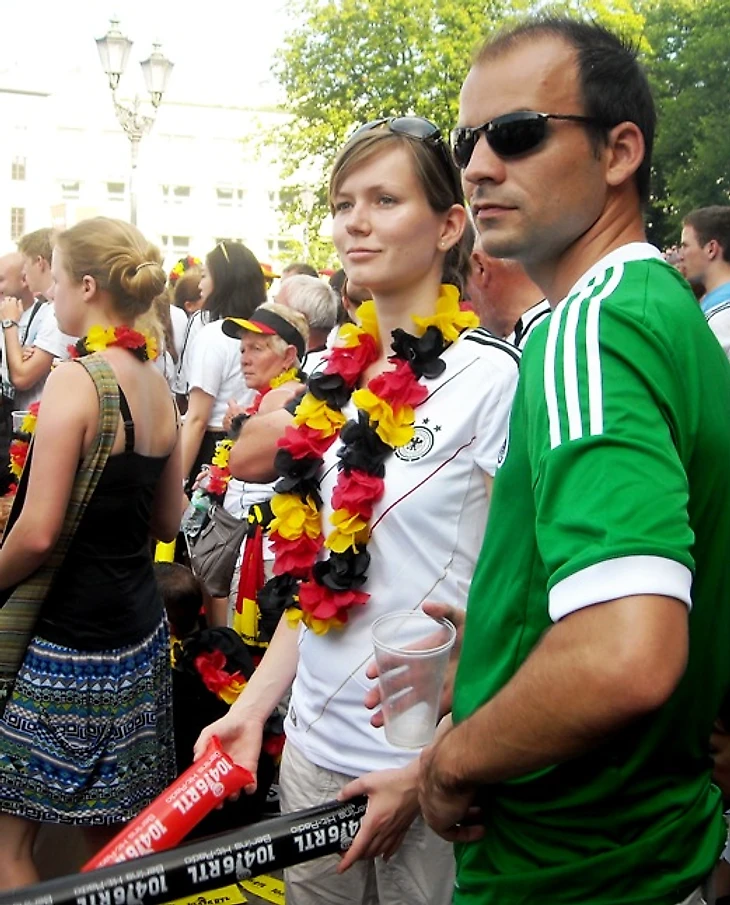 А один из этих замечательных немцев, в которых мы сразу же признали баварцев по характерным кожаным штанам, был настолько восхищен тем, что за их сборную болеют и россияне, что легко простил нам клубные предпочтения и по окончании игры надел Кате на шею свое ожерелье с искусственными цветами.