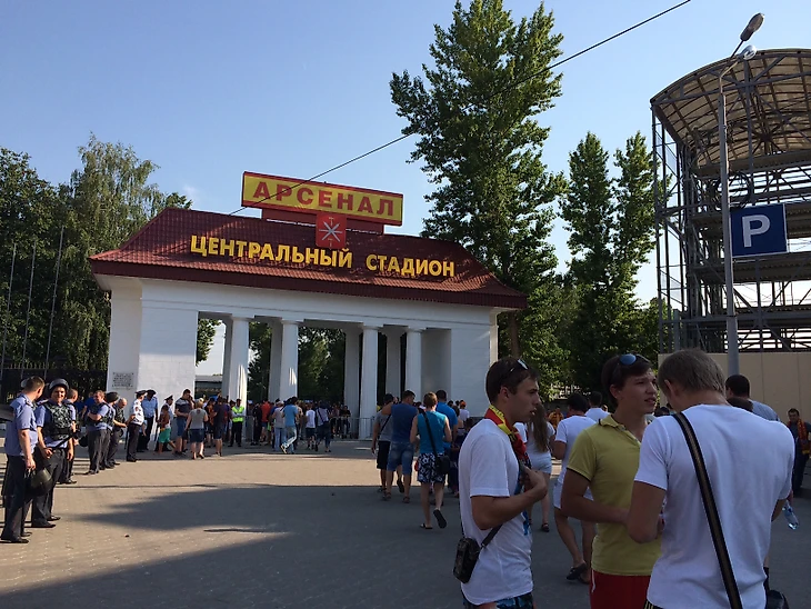Еще одна особенность стадиона «Арсенала» в том, что он окружен зелеными зонами – газоны и деревья создают ощущение, будто находишься в небольшом тихом парке. Некоторые болельщики именно так и коротали время до матча – гуляли по кругу, некоторые присаживались на газон. Около одной из трибун, например, можно было разглядывать фанатское граффити – «Только Тула будет первой».