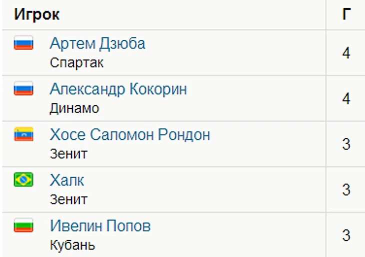 2. Таблица лучших бомбардиров после двух туров выглядит очень круто