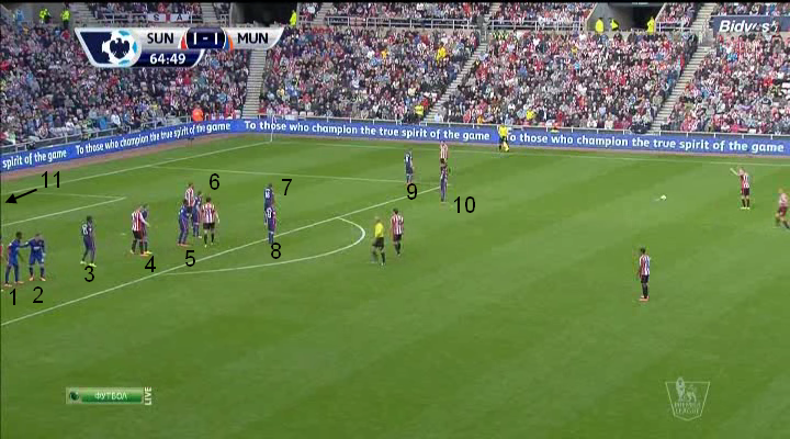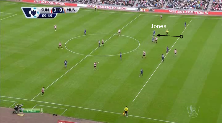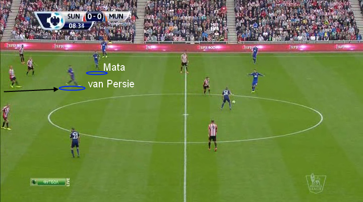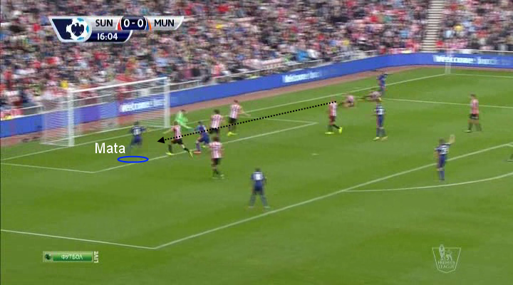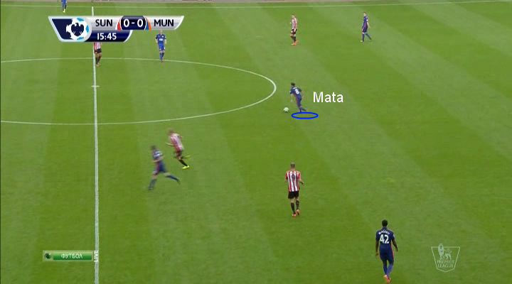 Игра стала больше строиться через центр, благодаря активности Янузая и опускавшегося глубоко Маты. Однако атакам «МЮ» катастрофические не хватало скорости в завершающей стадии, а медленные перебросы мяча с фланга в центр и из центра на фланг никак не способствовали растягиванию защитного построения «Сандерленда».