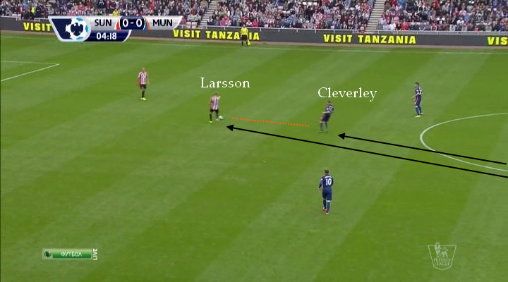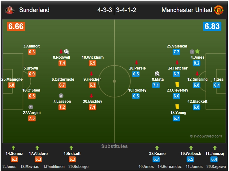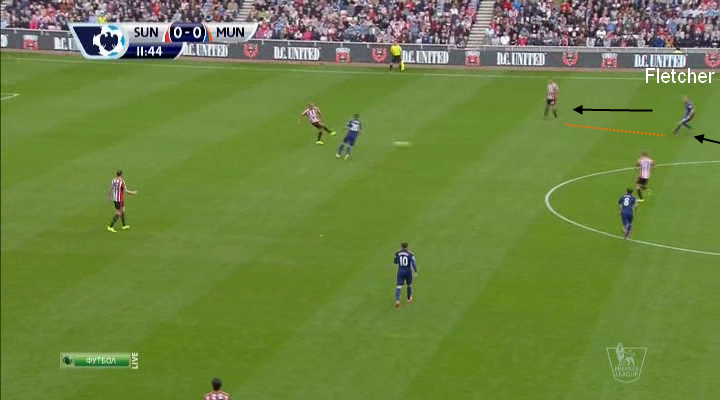 В самом начале игры было очевидно, что «МЮ» использует очень плотный и агрессивный прессинг, чего сильно не хватало в матче против «лебедей» туром ранее. В матче против «Сандерленда», когда один из полузащитников опускался глубоко для получения мяча, центрхавы «МЮ» выдвигались очень высоко, чтобы оказать давление и не дать быстро начать атаку: