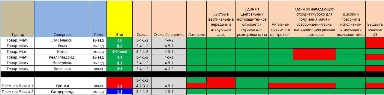 Общая тактическая таблица матчей "МЮ" при Луи ван Гале: