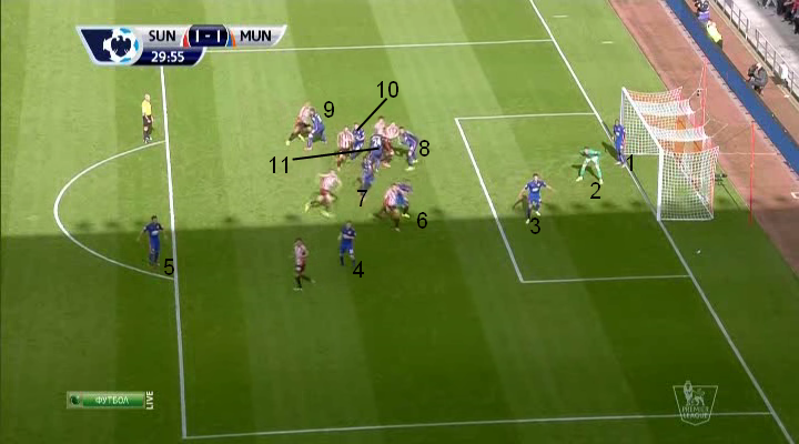 И это при том, что ван Гал при обороне на стандартных положениях дает указание своим игрокам находится  в штрафной «МЮ» в полном составе: