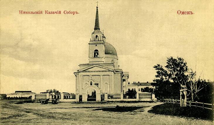 Никольская казачья церковь (собор с 1916 года) заложена 15 мая 1833 года. Это самый старый храм в Омске и является единственным уцелевшим в годы советской власти войсковым храмом. Главный престол был освящен 16 сентября 1843 г. Храм построен на пожертвования казаков Сибирского казачьего войска и других граждан. В основу проекта собора легли чертежи зодчего В.П. Стасова (1769-1848гг.), автора многочисленных построек в С.-Петербурге и Москве.
