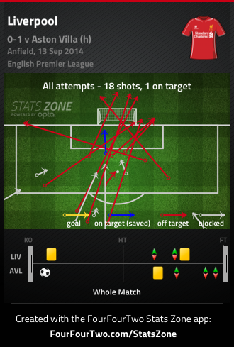Пара цифр из статьи на Oh my beauty (http://ohyoubeauty.blogspot.ru/). Экспериментальный состав "Ливерпуля" нанес 18 ударов по воротам, из которых в створ попал только один (плюс штанга Коута).