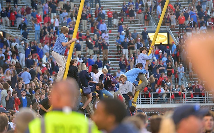 Так почему игроки «Оле Мисс» не удивились? Им случается видеть подобное в третий раз за три года. Ошалевшие болельщики бесятся искренне, от души и наверняка без цели кому-то навредить – но каждый раз их шабаш хлестко бьет по клубному кошельку.