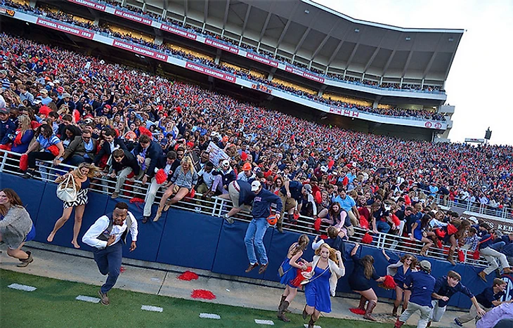 «Клянусь Богом, наш тренер Хью Фриз все знал», – сообщил игрок «Оле Мисс» Роберт Нкемдиш. – «За 20 минут до начала матча он предупредил: когда фанаты побегут к воротам, лучше уберитесь с дороги».