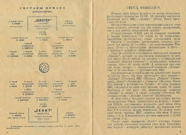 Встреча между "Зенитом" и "Шахтером" закончилась со счетом 2:2. Футболисты из Сталино завершили тот чемпионат страны на 11 месте, обогнав на два очка киевское "Динамо".