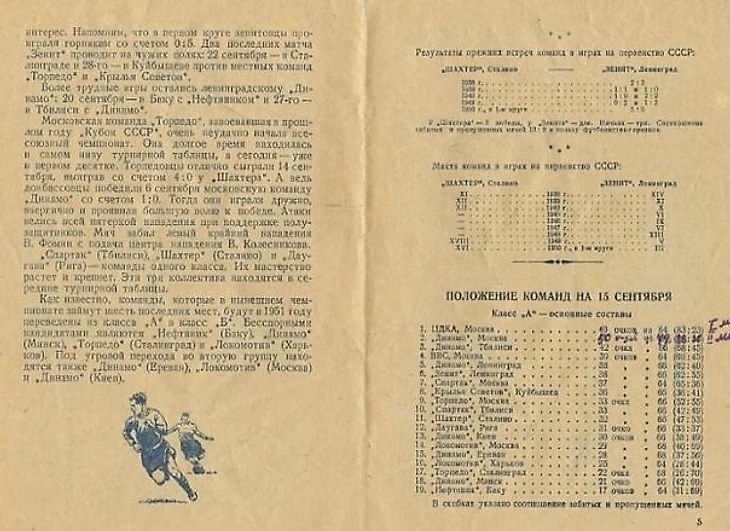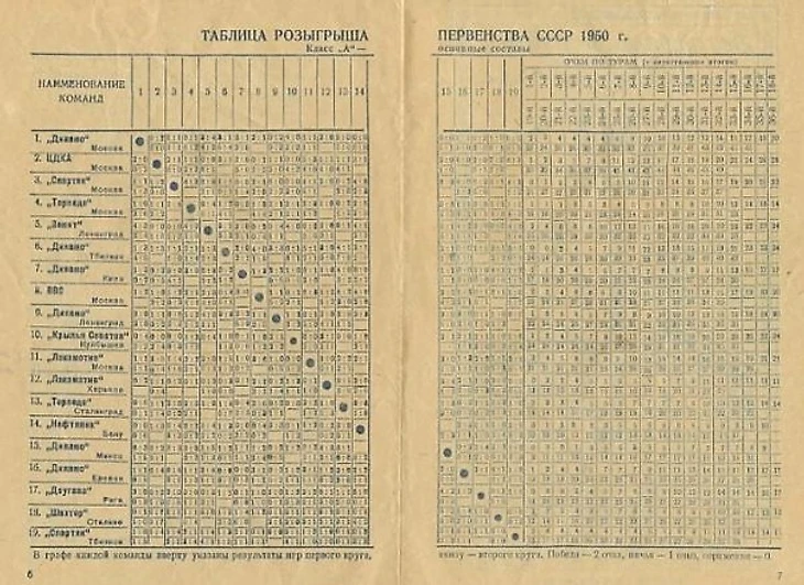 Как видим из турнирной таблицы, на середину сентября 1950 года, на первой строчке футболисты ЦДКА. Они тот чемпионат так и закончили - чемпионами.