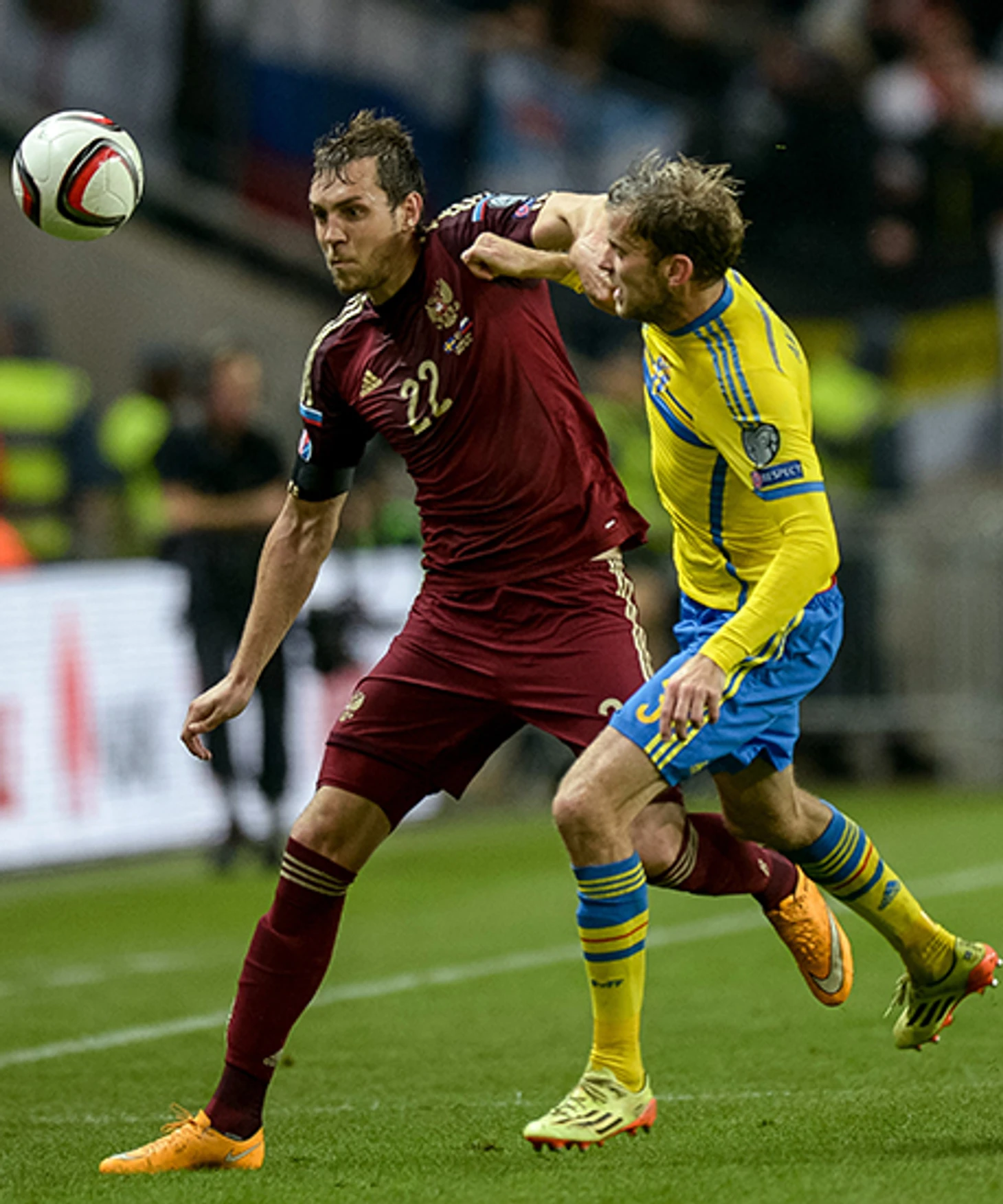 В нашей голевой атаке Дзюба толком не коснулся мяча, но стянул на себя Гранквиста и освободил Кокорину зону в центре шведской обороны. Еще раньше Дзюба, выиграв воздух, перспективно скинул мяч под удар Шатову, сразу после пенальти талантливо разобрался на фланге с Ульссоном и прострелил в район вратарской, потом пяткой отпасовал Кокорину в шведской штрафной, а ближе к перерыву еще и отвоевал мяч на правом фланге обороны.