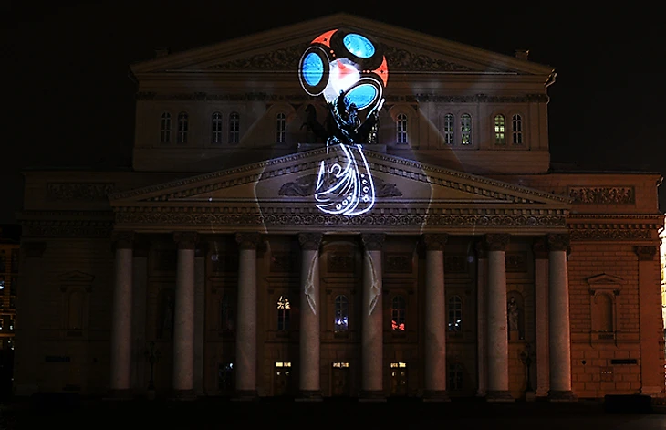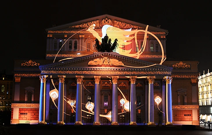 Лазерное шоу на фасаде Большого театра: