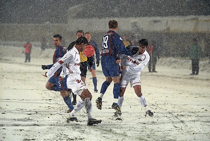 Очень важной была победа в ноябре 2002-го, когда мы выиграли на Восточной улице и стало понятно, что «Спартак» после стольких золотых лет впервые не выиграет чемпионат. По такому снегу я ни до ни после нигде не играл. Причем было не так уж и холодно, так что даже не требовалось утепляться, но снега навалило столько, что было все равно, какие шипы выбирать – до конца они все равно не входили. Сначала просто был снег, потом снег вперемежку с землей, так что там можно было и в кедах играть. Тогда у нас не получилось стать чемпионами из-за этого придуманного золотого матча с «Локомотивом», зато желание занять первое место на следующий год стало еще сильнее.