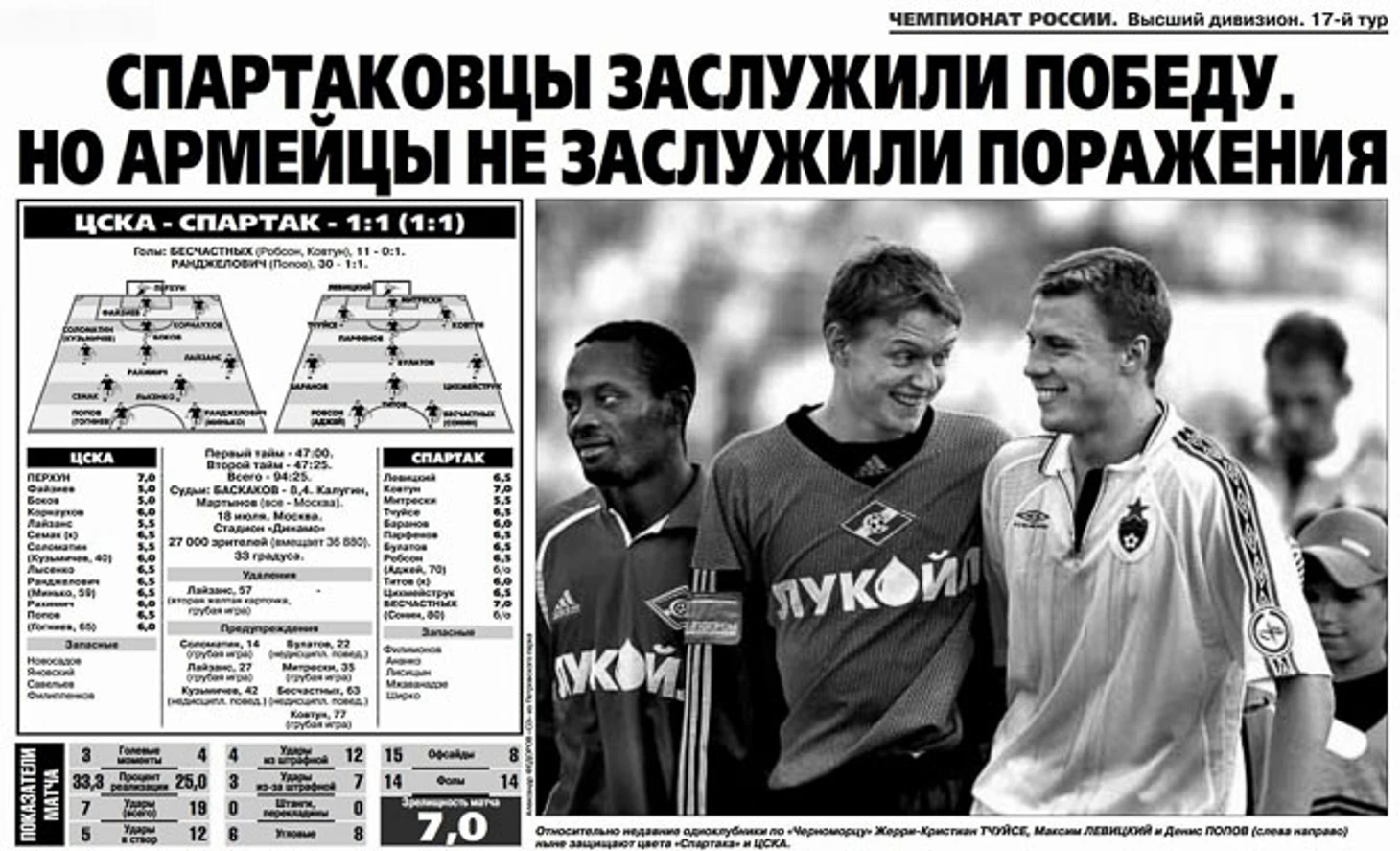 – Конечно, это была вторая моя игра – дерби со «Спартаком». Для Элвера это был дебют в ЦСКА, в Самаре он не играл, не успели документы оформить. Я тогда еще искал квартиру в Москве и временно жил у своего лучшего друга из Белграда. Он тоже очень любит футбол, он ко мне прилетал и в Махачкалу, и в Москву, и в Питер. Утром перед игрой со «Спартаком» он мне сказал: «Мне приснилось, как я открываю «Спорт-Экспресс», а там авторы голов – Ранджелович и Бесчастных. Счет не видел». Ну, я посмеялся, ответил ему: «Выпей холодной воды, расслабься» и поехал на игру со «Спартаком».