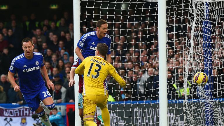 С первых минут «синие» завладели инициативой и заперли соперника на его половине поля. Периодически происходящее напоминало настоящий штурм. И на 31-й минуте гости не справились с угловым: Диего Коста скинул мяч на дальнюю штангу, а Джон Терри с нескольких метров поразил цель. Ещё до перерыва «синие» должны были забить ещё пару мячей, но голкипер «Вест Хэма» Адриан творил настоящие чудеса. Впрочем, во втором тайме и ему пришлось капитулировать. Свой 13-й гол в Премьер-лиге забил Диего Коста. Причём, форвард «Челси» сделал всё здорово, оставив не у дел сразу трёх опекунов!