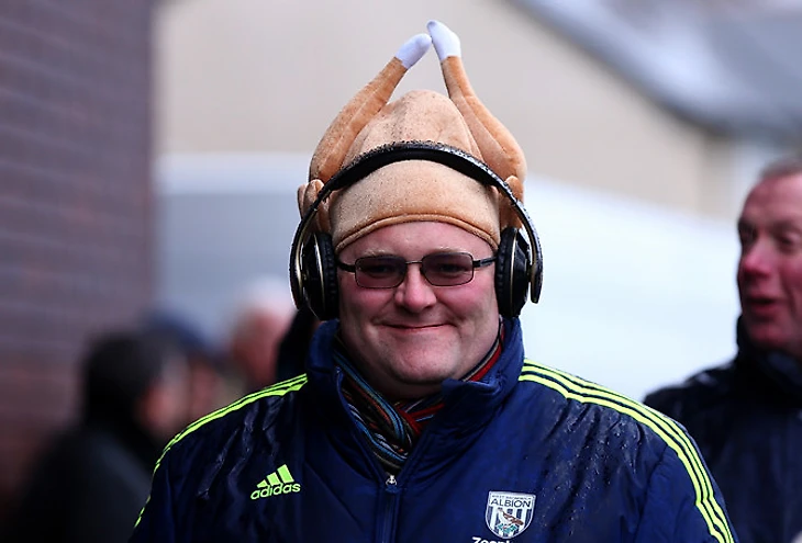 Где и в какое еще время года индейка, наушники и очки поместятся на одной голове. Фана «Вест Брома».