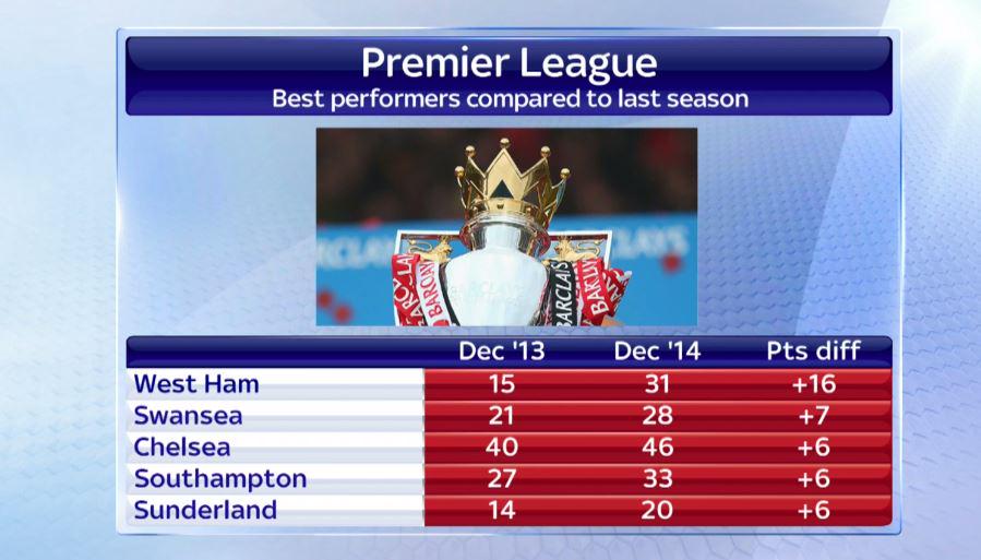 31 декабря 2014, 12:28 1 мин. 1Прогресс налицоEx-GeniusАвтор"Вест Хэм" сделал огромный шаг вперёд по сравнению с рошлым декабрём. Лидер чемпионата "Челси" по этому показателю отстаёт также от "Суонси", заработавшего 7 бонусных очковпремьер-лига АнглияСуонсиЧелсиВест ХэмСандерлендСаутгемптон