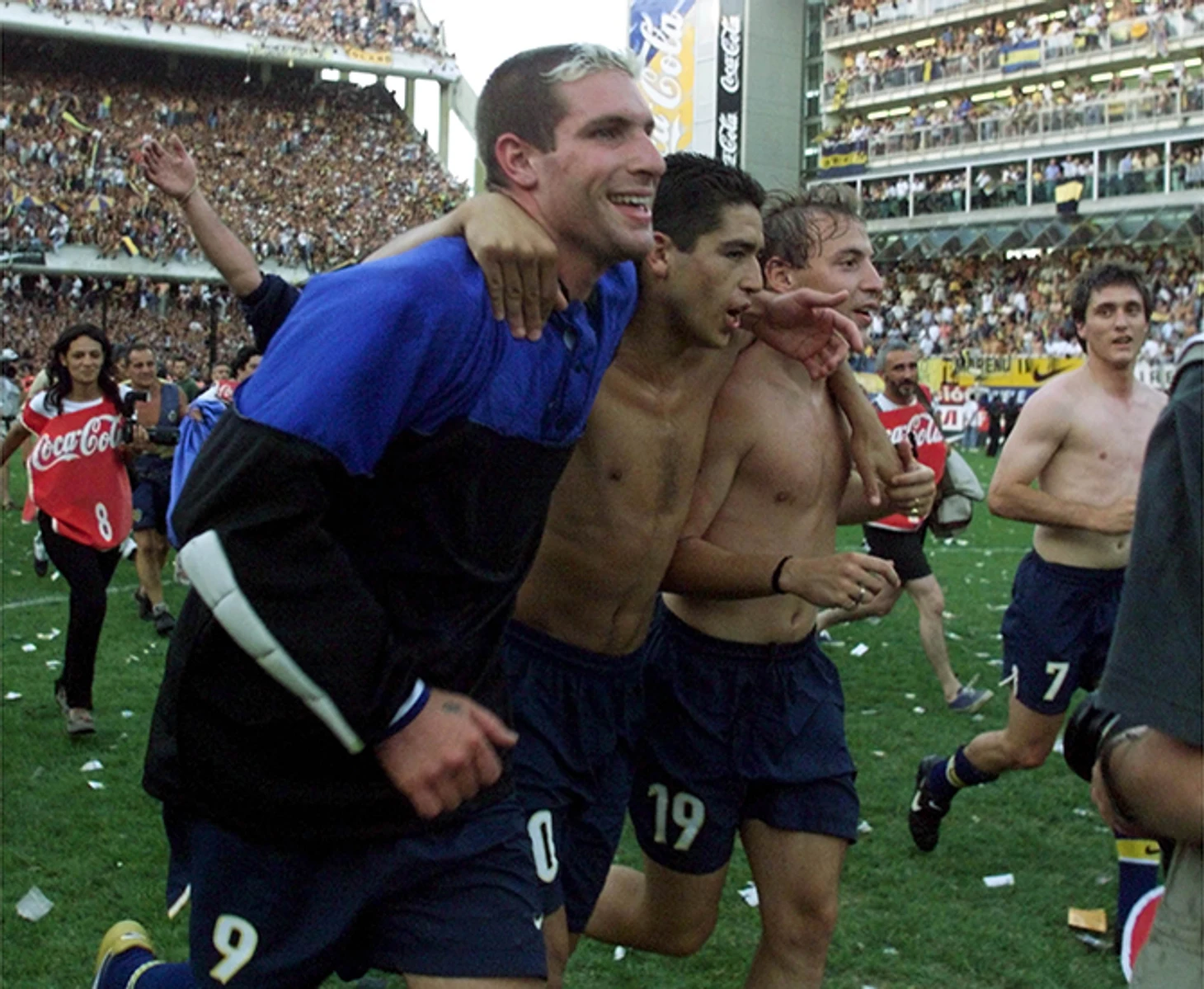 Хуан Рикельме (в центре) празднует чемпионство «Боки Хуниорс» в конце 90-х. До переезда в Европу он выиграл три титула в Аргентине и два Кубка Либертадорес.