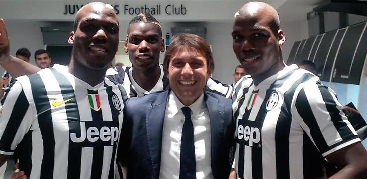 Антонио Конте в окружени братьев Погба: Флорентена («Сент-Этьен»), Поля и Матиа («Пескара»)