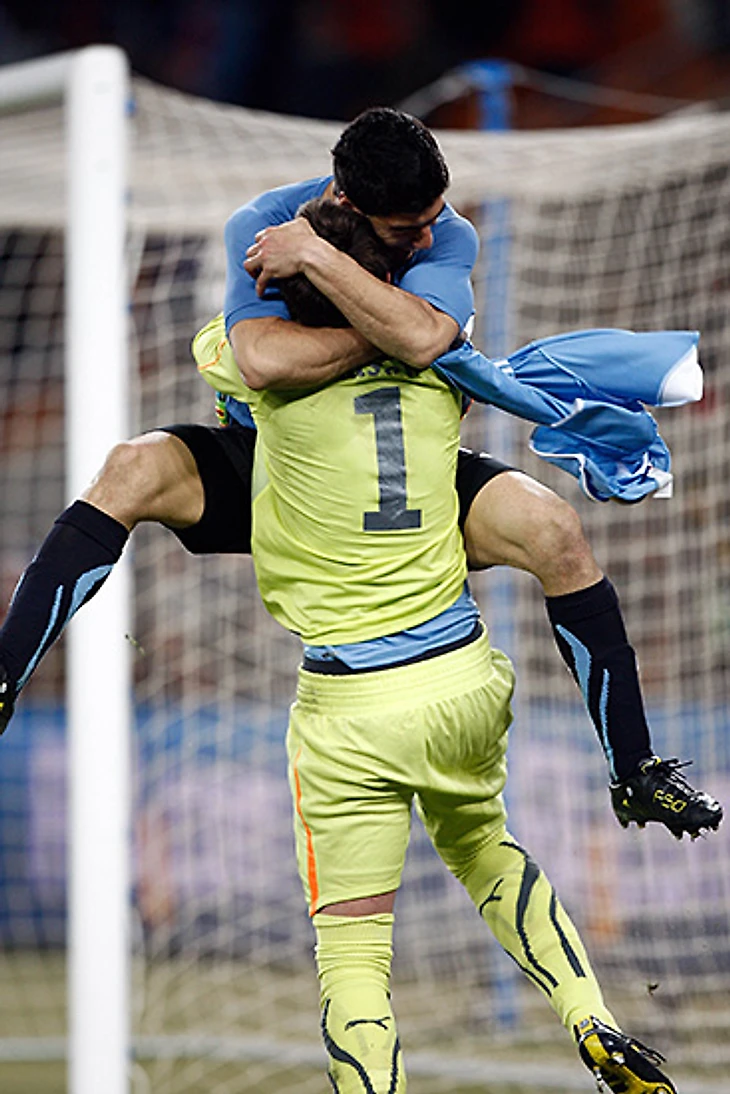 Народ был повсюду. Помню, как Диего Лугано, замененный из-за травмы колена, вскочил со скамейки и побежал на поле праздновать. Каждый его шаг сопровождался болью, но вряд ли он ее чувствовал. Как и Николас Лодейро, который второй дополнительный тайм играл с переломом пятой плюсневой кости. Когда я появился из туннеля и побежал на поле, многие двинулись мне навстречу и обняли. Они говорили, что если бы я тогда не выбил мяч, мы бы никуда не прошли. Кто-то даже плакал – страна с населением всего три миллиона человек пробилась на чемпионате мира в четверку лучших.