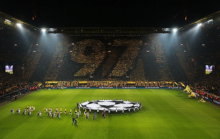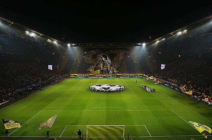 Перфоманс фанатов дортмундской «Боруссии» к ответному матчу 1/8 финала Лиги чемпионов против «Ювентуса».