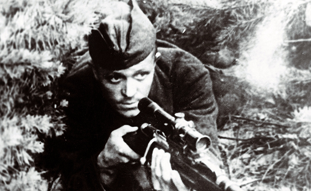 Герой Советского Союза снайпер М.Я. Миронов на огневой позиции. 2 июля 1942 г. Фото: предоставлено пресс-службой Общества «Динамо»