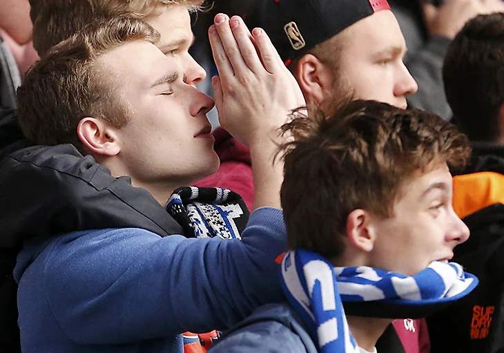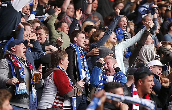 Фаны «Гамбурга» празднуют спасение на трибунах.