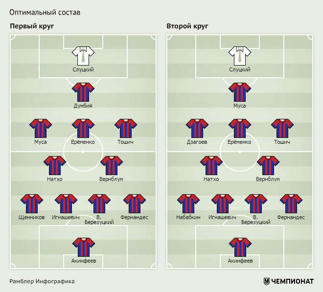 — ЦСКА отыграл сезон очень ровно и достаточно убедительно. Даже в Лиге чемпионов армейцы выступили уверенно, имея осязаемые шансы выйти в еврокубковую весну перед последним туром. И пусть команде так и не удалось ничего выиграть, она подтвердила свой уровень. Если смотреть глобально на то, как менялась игра ЦСКА с приходом Натхо и Ерёменко, сезон можно считать удовлетворительным.