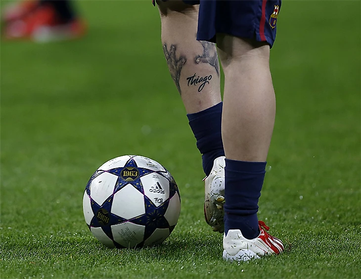 Декабрь 2014. На левой ноге аргентинца появились знаки, предупреждающие об опасности – мяч, меч, роза и десятый номер. Мир разочарованно вздохнул: волшебная левая Месси заслуживала более оригинального и красивого рисунка.