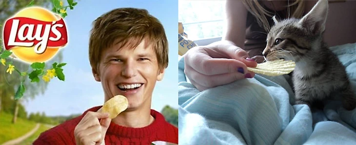 16. Это про чипсы. У котика нет нормальных пальцев, поэтому его кормит человек.